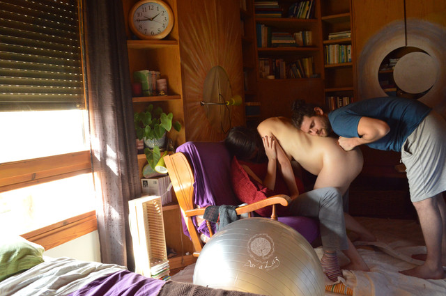 Recuerdo ese rato con descontrol absoluto, pidiéndole a Seba masaje con mucha fuerza en las lumbares y el sacro, apoyándome sobre Raquel, y preocupándome entre contracciones por apretarle la barriga. Recuerdo mi voz saliendo de mí sin tapujos, sin filtros.
